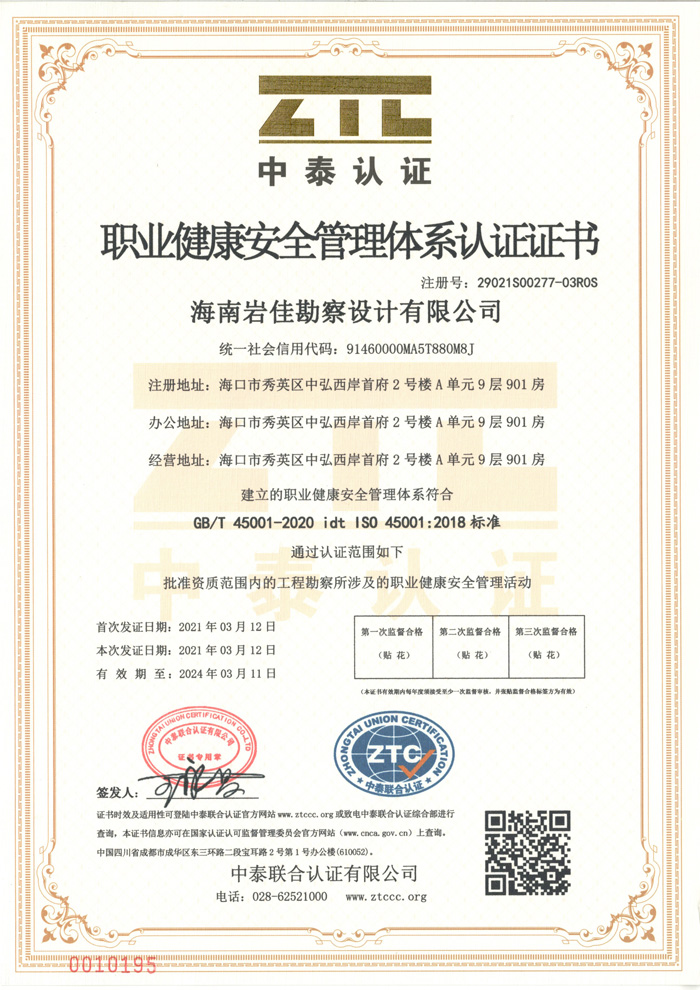 職業(yè)健康安全管理體系認(rèn)證證書